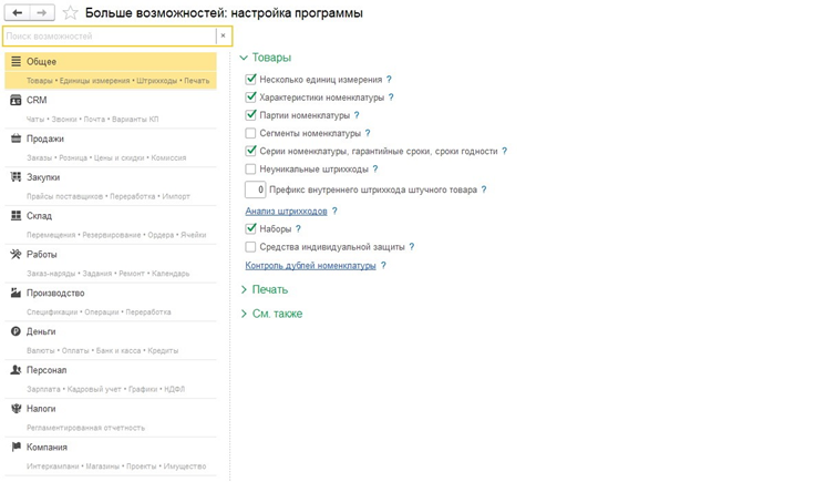 Блоки, которые охватывает 1С:Управление нашей фирмой 3.0 обширны: