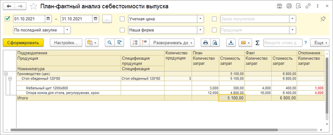 - Расчёт себестоимости: позволяет учитывать в программе плановую и фактическую стоимость продукции.