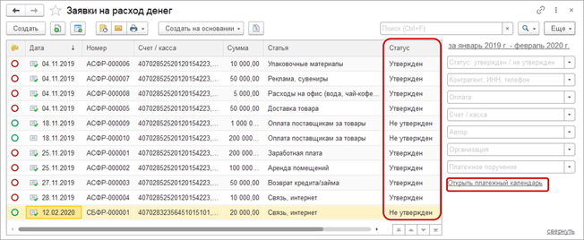 - Платежный календарь для контроля бюджета: здесь можно контролировать плановые поступления от клиентов и предстоящие выплаты поставщикам. Возможность зарезервировать деньги на зарплаты или налоги: система заблокирует эти суммы.