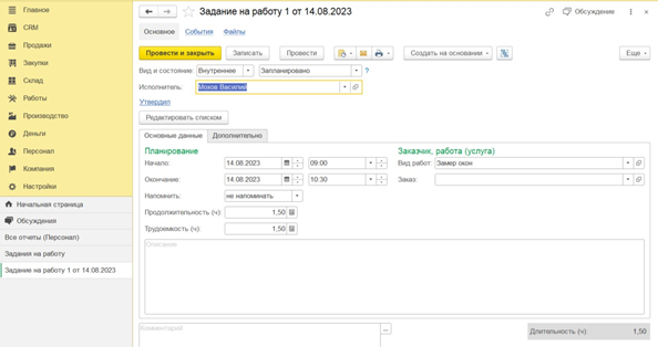 - «Заказ-наряд», в котором можно фиксировать виды работ, материалы (в том числе, если их предоставляет заказчик), сроки и расчёт сдельной оплаты. Есть интеграция с платежным календарём для контроля сроков оплаты.