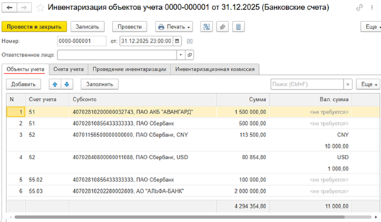 - инвентаризация безналичных денежных средств
