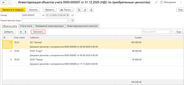 - инвентаризация НДС по приобретенным ценностям, работам, услугам