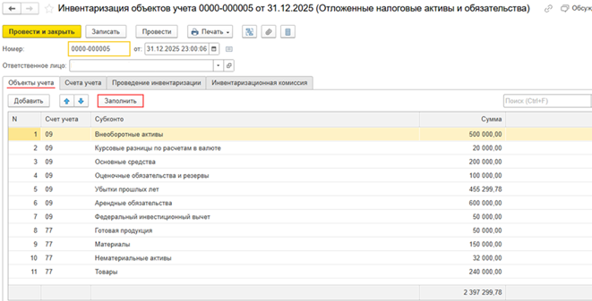 - инвентаризация отложенных налоговых активов и обязательств (ОНА и ОНО)