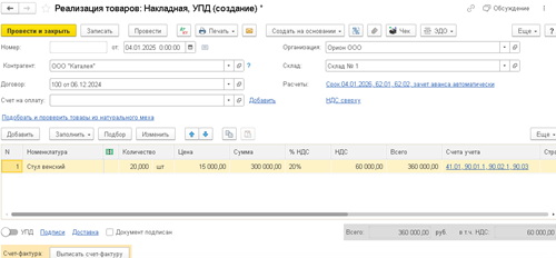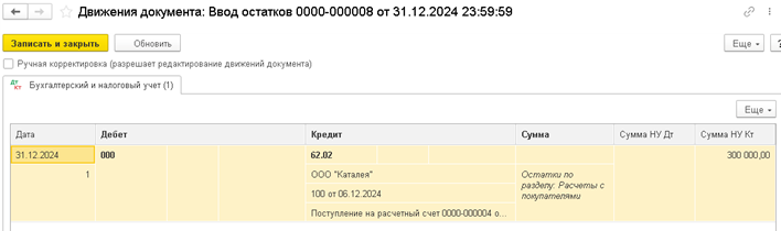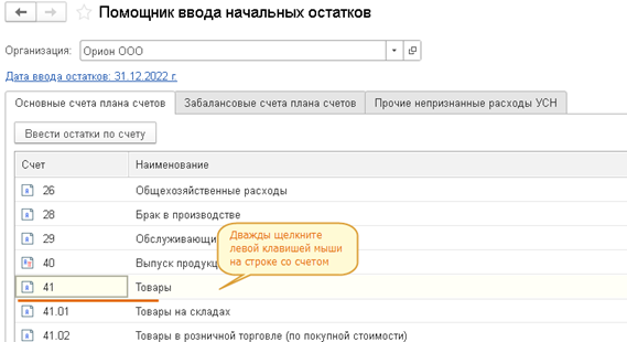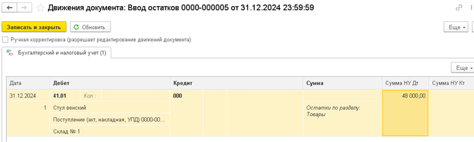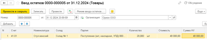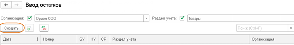 И повторяем создание ввода начальных остатков по тому же принципу, что и со счетом 41 «Товары»