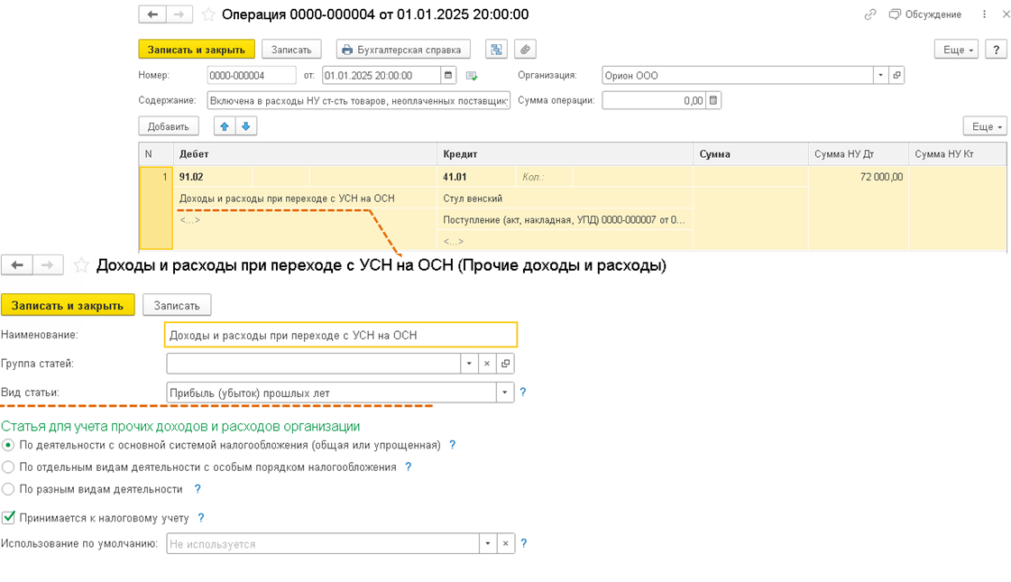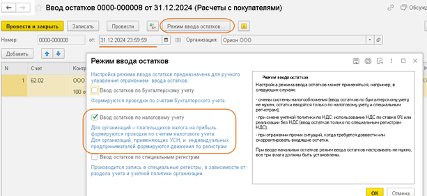 Ввод остатков для НУ по товарам, не реализованным в периоде применения УСН