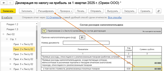Отражение расходов в декларации по налогу на прибыль